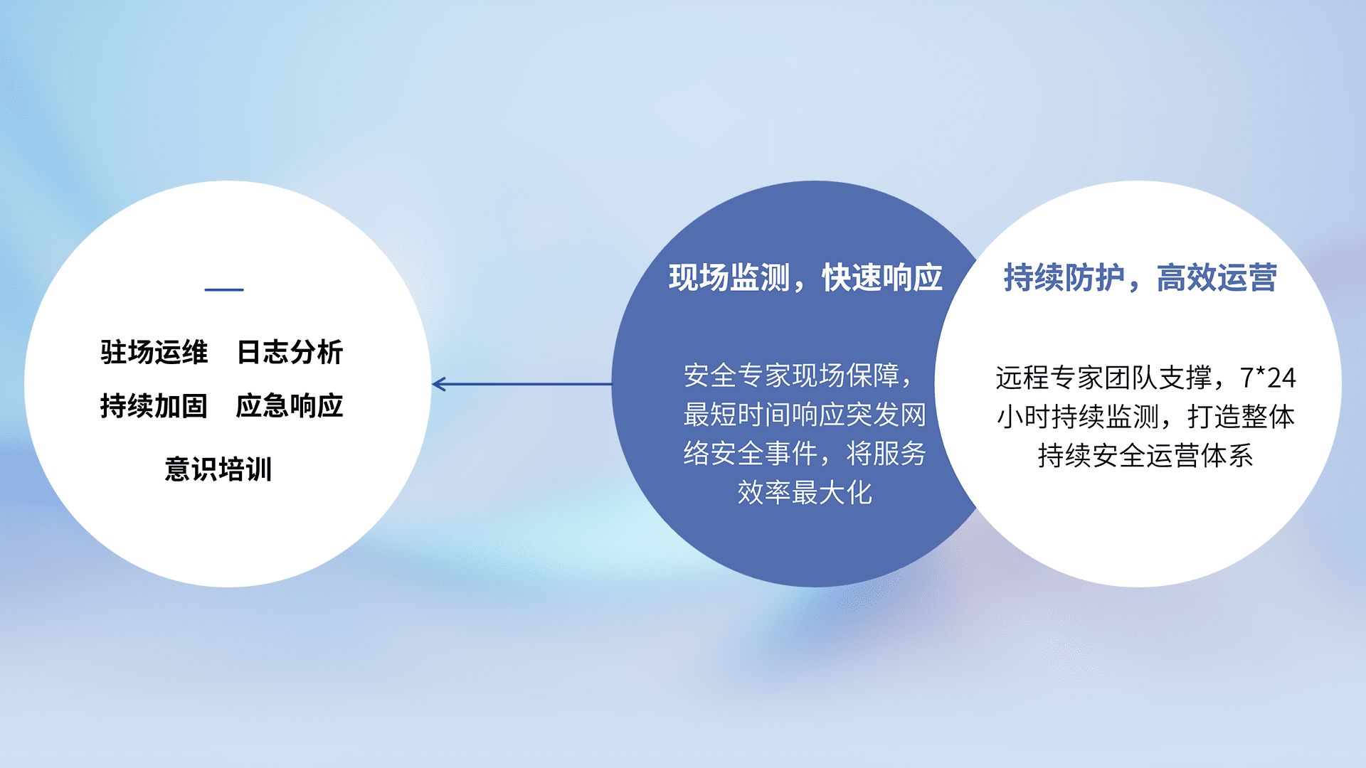 针对客户行业特性,,,,提供专属的一站式安全管理服务,,,,帮助客户全面感知网络空间威胁,,,,通过安全专家的线上、、、线下防护支持,,,实现风险闭环,,将安全保障常态化,,为客户打造常态化安全运维运营服务。。。